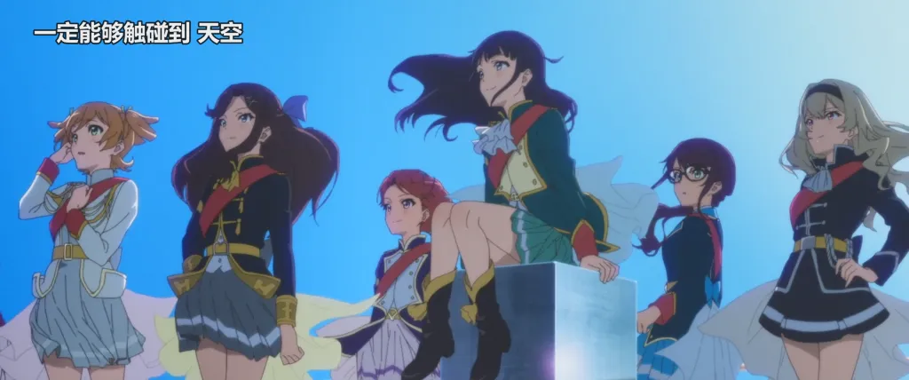 而不管是 TV 还是剧场版,Revue 一直是以两人一组的形式进行,在抛开百合商法卖CP的要素之外。从角色塑造得角度而言,TV 里串联起来的大致的主题是过去 —— 跃入舞台、站上舞台的过去,而剧场版则是「未来」 —— 下一个舞台在哪里,舞台少女去向哪里?得出答案的过程即为 Revue ,亦即角色对自我的「审视」。少女们对应式的塑造,「予勇者以试练,予圣人以诱惑,予我以你」,是「你」让「我」对自己 Revue。
