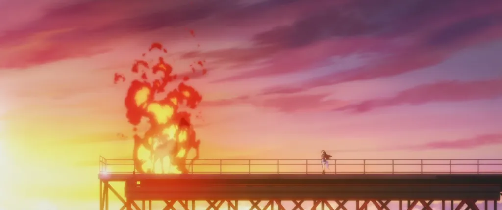 从这个角度再理解坠落,就会发现它与我们熟悉的意象十分相似 —— 凤凰的涅槃。浴火重生正是高空一跃而下的目的,「舞台少女已经死了」,那么就死去、坠落、熔化吧、重构吧。为什么再生产制衣厂的兼用卡要投下燃料,而燃料是代表她们的物件?这样的象征其实就是一次自我的重构,TV 的故事通过自我认知重构找回自我、通过剧本的重构突破命运。而剧场版则对自我完成了重构,来走向未来 —— 下一个舞台?不,处处都是舞台,但不需要规定好的剧本去演绎,而是以自我的感情、羁绊去演绎。从 TV 的过去到剧场的未来,连接其中的「现在」就是各位舞台少女,从高塔上一跃而下、迎风坠落,迎来的是自我面向未知的「再生产」。